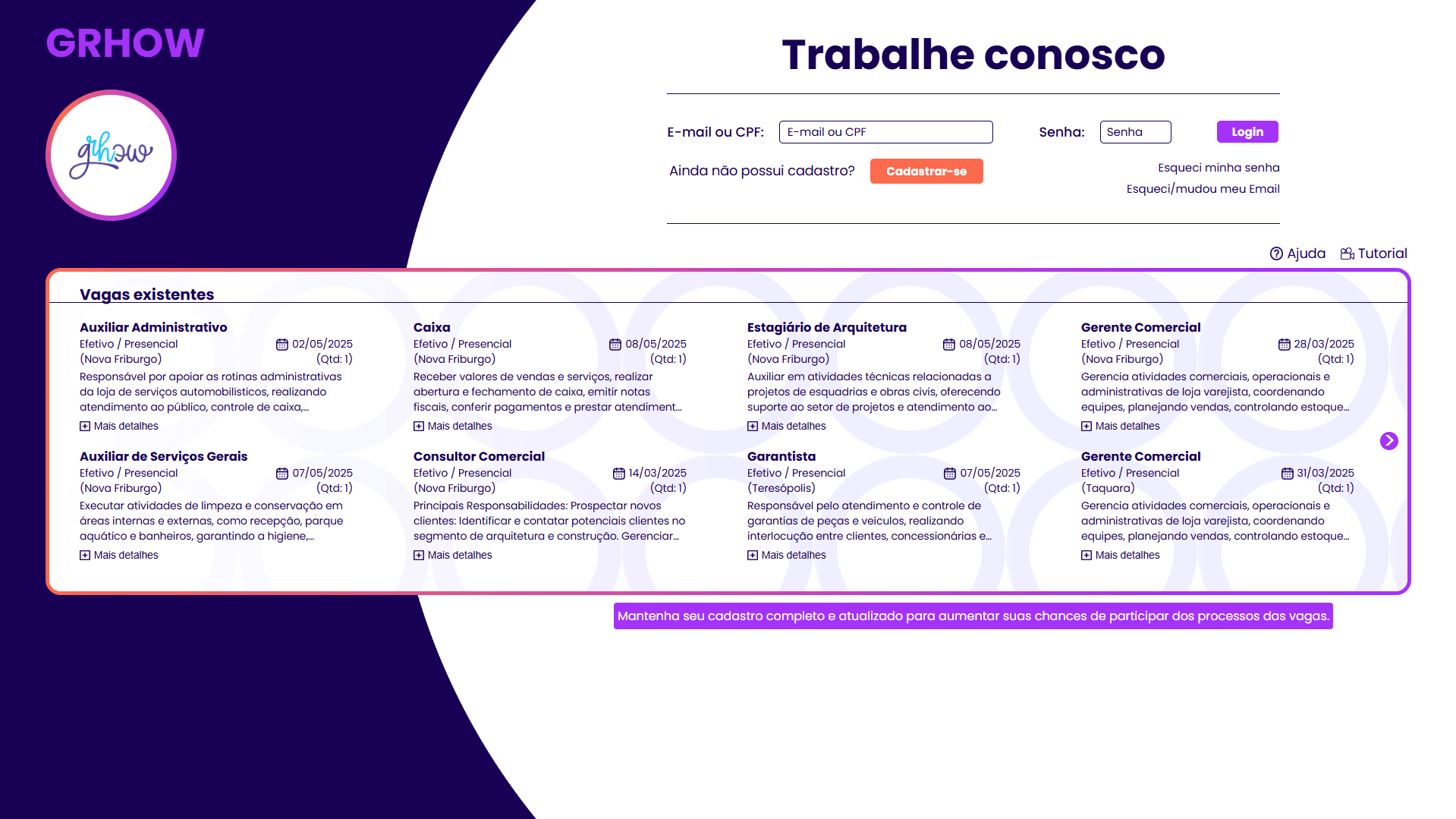 Explore oportunidades de carreira e fique por dentro das melhores práticas de RH. Acesse nossas vagas e conteúdos exclusivos.
